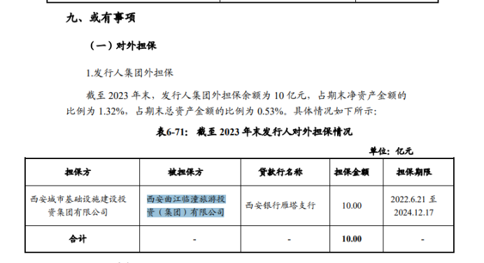 此外,西安城市基础设施建设投资集团有限公司还为西安曲江临潼旅游投资(集团)有限公司作担保,向西安银行雁塔支行借款了10亿元。