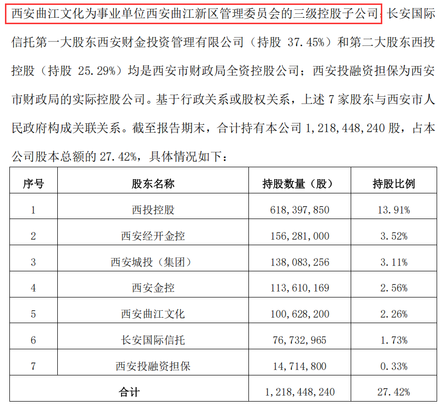 西安银行半年报披露,该行股东西安曲江文化为事业单位西安曲江新区管理委员会的三级控股子公司;西投控股为西安市财政局的全资子公司;西安经开金控为事业单位西安经济技术开发区管理委员会二级控股子公司;西安城投(集团)为西安市人民政府国有资产监督管理委员会的全资子公司;西安金控为事业单位西安浐灞管委会实际控股公司;长安国际信托第一大股东西安财金投资管理有限公司(持股37.45%)和第二大股东西投控股(持股25.29%)均是西安市财政局全资控股公司;西安投融资担保为西安市财政局的实际控股公司。基于行政关系或股权关系,上述7家股东与西安市人民政府构成关联关系。