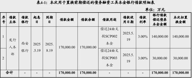 该笔24亿元中票募资的联席主承销商是西安银行,发行该笔中票的资金是5月中旬向西安银行借款,期限只有3个月,用以置换合计17亿元的“24曲文投SCP002、24曲文投SCP003”债务,还款账户也是西安银行账户。