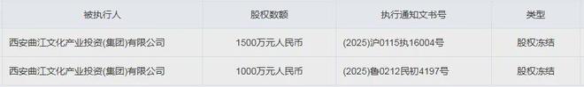 另据悉,西安曲江文化产业风投公司的母公司是西安曲江文化产业投资集团(以下简称西安曲江文投集团),持有合计2500万元股份在今年7月也被集中冻结。
