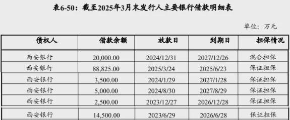 西安城市基建投资集团作为西安银行第六大股东,今年上半年净亏损超7亿元,据其2025年第一期中票募资说明书披露,截至去年3月底其本部及附属公司涉及向西安银行借款近10亿元,大部分为2024年借款,于2027年到期。