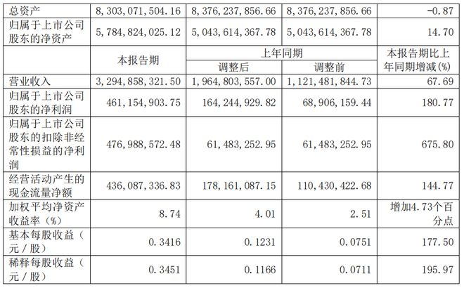 8月8日,雪天盐业集团股份有限公司(以下简称“雪天盐业”)披露半年报,公司2022年半年实现营业收入32.95亿元,同比增长67.69%,净利润4.61亿元,同比增长180.77%,本每股收益0.3416元,同比增长177.50%。