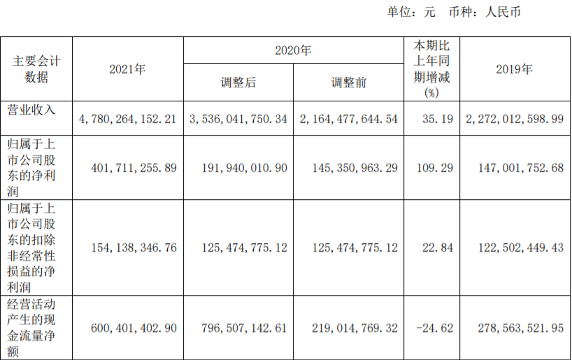 主营盐产品的价格近年来逐渐走高,这一点在2021年的年报中就有所提现。2021年年报显示,雪天盐业2021年实现营业收入47.8亿元,同比增加35.19%;归属于上市公司股东的净利润约4.02亿元,同比增加109.29%。