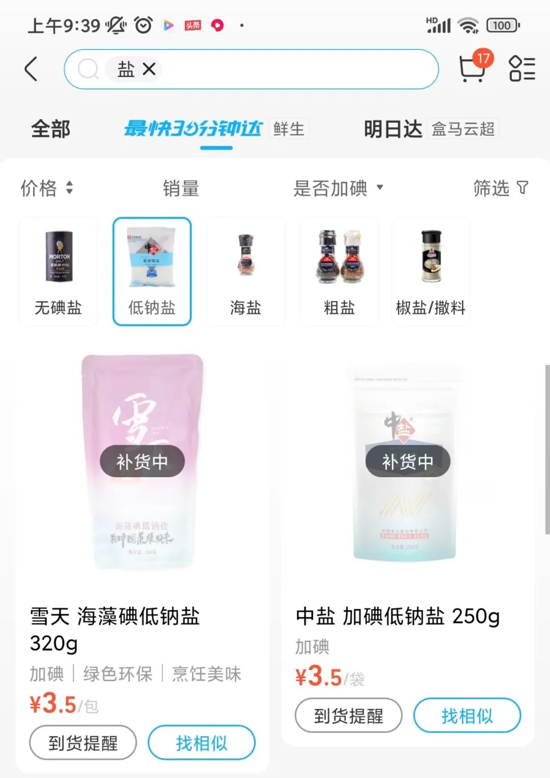 走访长沙部分大型商超,国资潇湘融媒看到购买食盐的市民明显增多。在本地部分生鲜外卖平台上,多款食盐显示“缺货”“补货中”。
