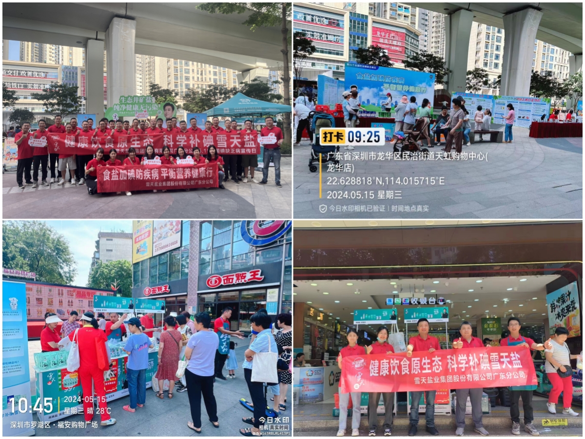 与深圳市疾控中心、龙华区疾控中心等单位联合开展5·15宣传活动,设立七个宣传活动地点,向市民介绍健康用盐知识和雪天盐产品。