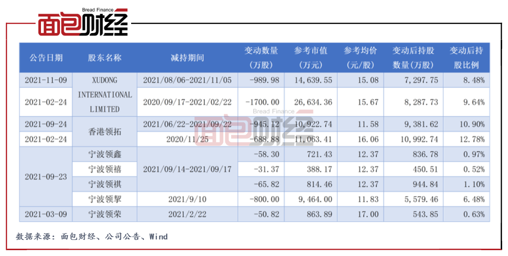 另外,自2020年9月,公司大股东及其一致行动人也频繁减持公司股份。近期,公司再次发布公告称,股东XUDONG INTERNATIONAL LIMITED通过集中竞价累计减持公司股份约989.98万股,占公司总股本的1.15%。