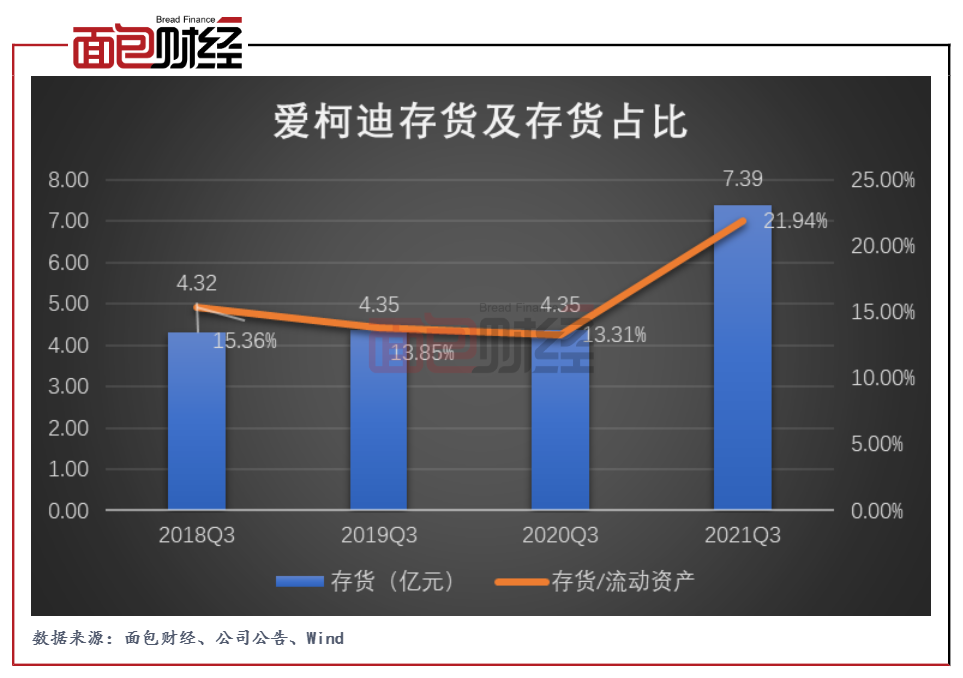 图5:2018Q3至2021Q3爱柯迪存货及存货占比