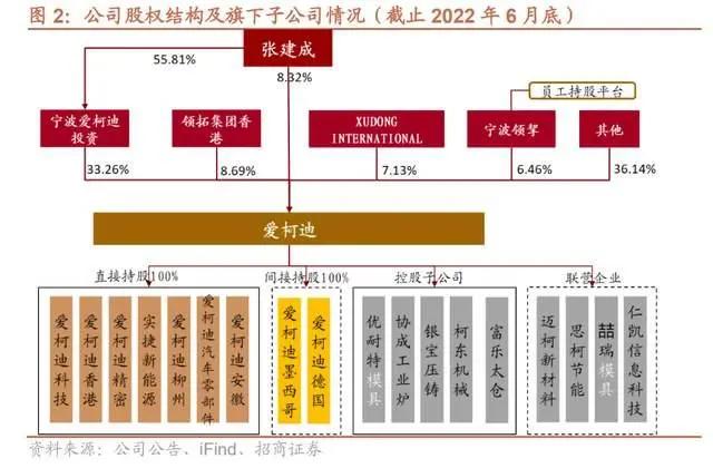 截至 2022 年 6 月 30 日,公司实控人张建成直接和间接合计控制公司 50.84%的股权,其直接持有公司 8.32%的股权;通过控制爱柯迪投资而间接控制公司 33.26%的股权;通过控制宁波领挈、宁波领荣、宁波领祺、宁波领鑫、宁波领禧而间接控制公司 9.26%的股权。
