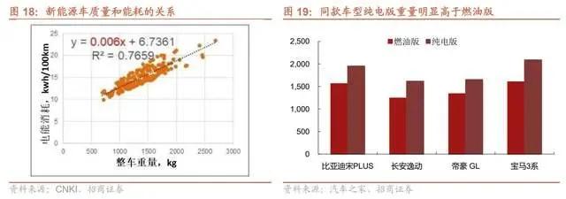据知网相关数据研究表明,电动车对重量更为敏感,电动车比同级别燃油车重 100~250kg,尤其是 A、A0 和 SUV 更为明显。