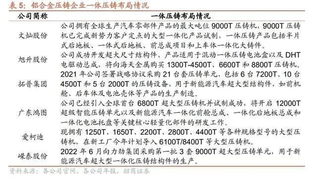 随着我国汽车产业的发展,国内主要汽车铝合金压铸件生产企业不断扩大大型压铸件产能,多家压铸企业开始布局一体压铸业务。