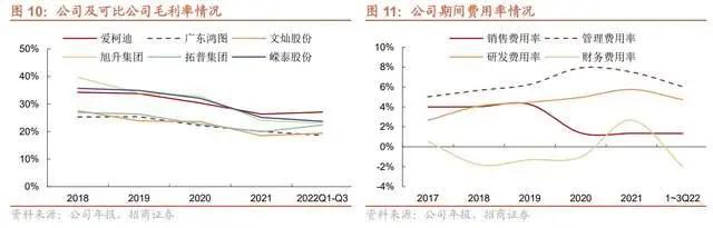 (1)毛利率方面,2020 年以来,受原材料价格持续大幅上涨、国际海运费持续大幅上涨、人民币持续升值等多种外部因素的影响,公司与主要同行企业的毛利率均处于下降趋势,2022 年 Q1~Q3 公司毛利率为 27.04%,相较于 2021 年毛利有所提升,公司毛利率处于行业领先地位。
