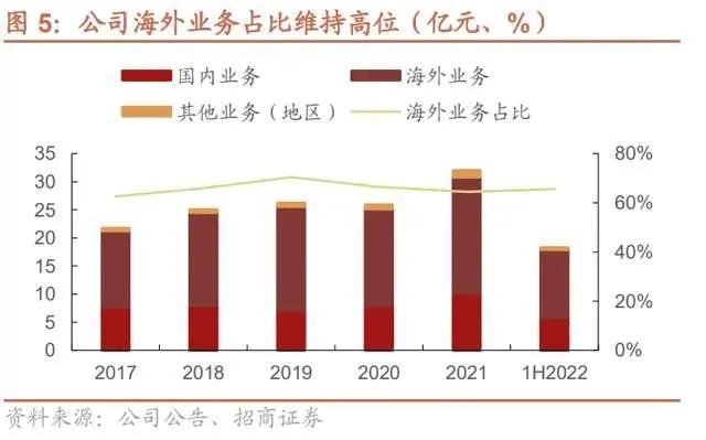 从国际海运费的历史表现图来看,2021 年至 2022 年初,国际海运费呈现不断上升的趋势,2022 年以来海运费下降明显。由于公司 50%以上的营收都来源于海外业务,2022 年初以来国际海运费的下降一定程度上提升了公司的毛利率情况。