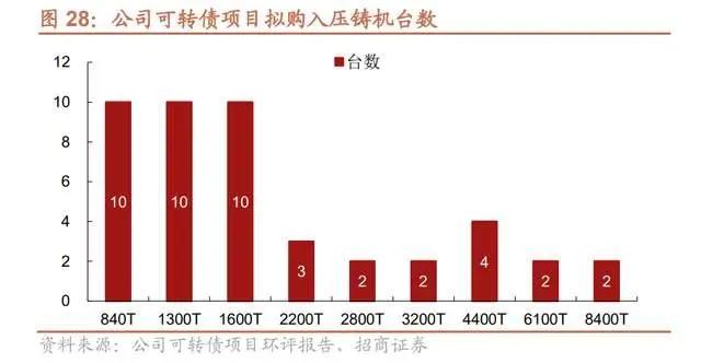 其中,公司可转债项目中计划引进 45 台大型压铸机,4400T 的压铸机 4 台,6100T 压铸机 2 台和 8400T 压铸机 2 台。