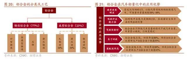 汽车用铝合金主要包括铸造铝合金和变形铝合金,其中铸造铝合金占据主导地位,占汽车用铝量约 77%左右。
