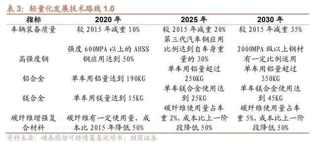 中国汽车工程学会强调了轻量化材料在汽车轻量化中的作用,并规划了相关使用目标。