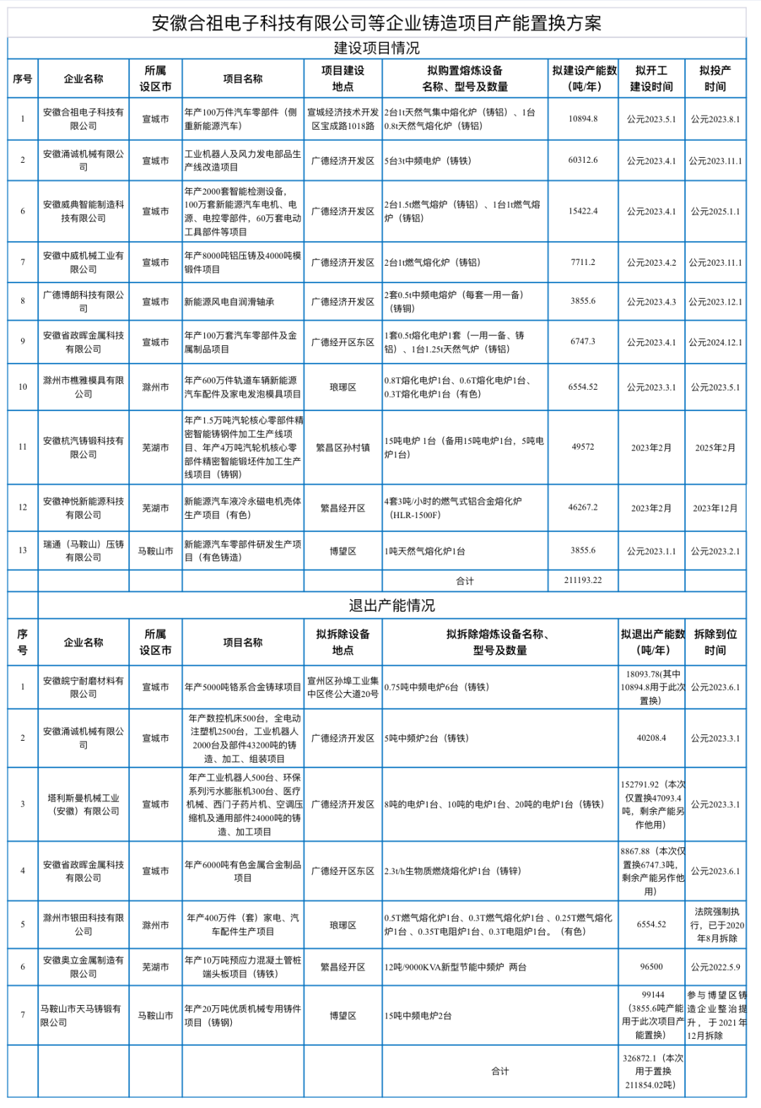 按照《工业和信息化部办公厅国家发展和改革委员会办公厅生态环境部办公厅关于重点区域严禁新增铸造产能的通知》(工信厅联装〔2019〕44号)、《安徽省铸造产能置换管理实施办法(暂行)》(皖经信装备函〔2021〕126号)要求,现将宁国桑尼泰克精密铝制品有限公司等企业铸造项目产能置换方案予以公示。