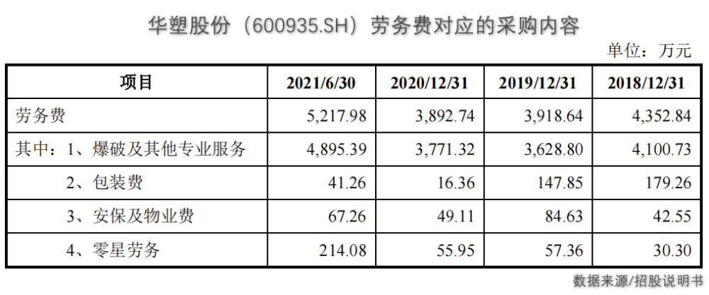 相关“细节”在招股书中。《经济参考报》记者注意到,华塑股份在招股书中仅提及“劳务费”问题。公司称,报告期内,公司存在劳务费的情形,劳务费下对应的有“爆破服务、热电机组运营服务、电石出炉服务等、包装费、安保及物业费和零星劳务费。”公司称,爆破服务向具有资质的爆破公司采购,不属于劳务外包;热电机组运营服务需运营方提供符合国内先进电厂运营标准的服务,技术含量较高,不属于劳务外包;电石出炉及包装服务技术含量低、重复性高,安保及物业等服务属于生产辅助类服务,因此该类服务向具有相关经验的第三方采购,属于劳务外包。
