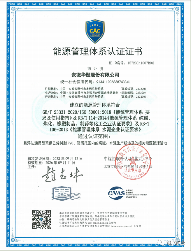 近日,华塑股份顺利通过能源管理体系认证,标志着该公司在能源管理方面取得关键性成果,为企业实现可持续发展奠定了坚实的基础。