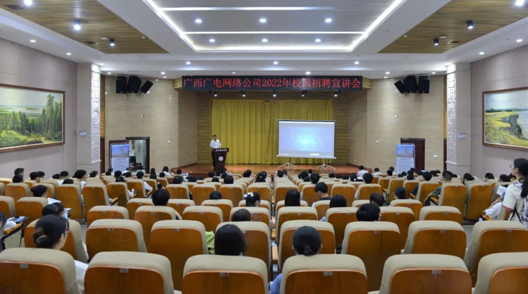 当天,广西广电网络公司在广西财经学院学术报告厅举行2022年校园招聘宣讲会,公司党委副书记、副董事长、总经理罗勇在宣讲会上对公司的发展历程、主营业务、发展前景、招聘需求等问题进行了详细介绍。广西财经学院200多名应届毕业生现场聆听宣讲会,并对公司展现出浓厚兴趣和就业渴望,纷纷投递简历。