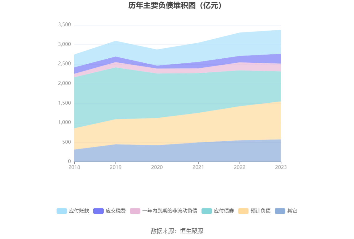 负债重大变化方面,截至2023年年末,公司应付债券较上年末减少16.27%,占公司总资产比重下降2.24个百分点;预计负债较上年末增加11.55%,占公司总资产比重上升0.29个百分点;应交税费较上年末增加52.18%,占公司总资产比重上升0.72个百分点;应付账款较上年末增加2.66%,占公司总资产比重下降0.34个百分点。