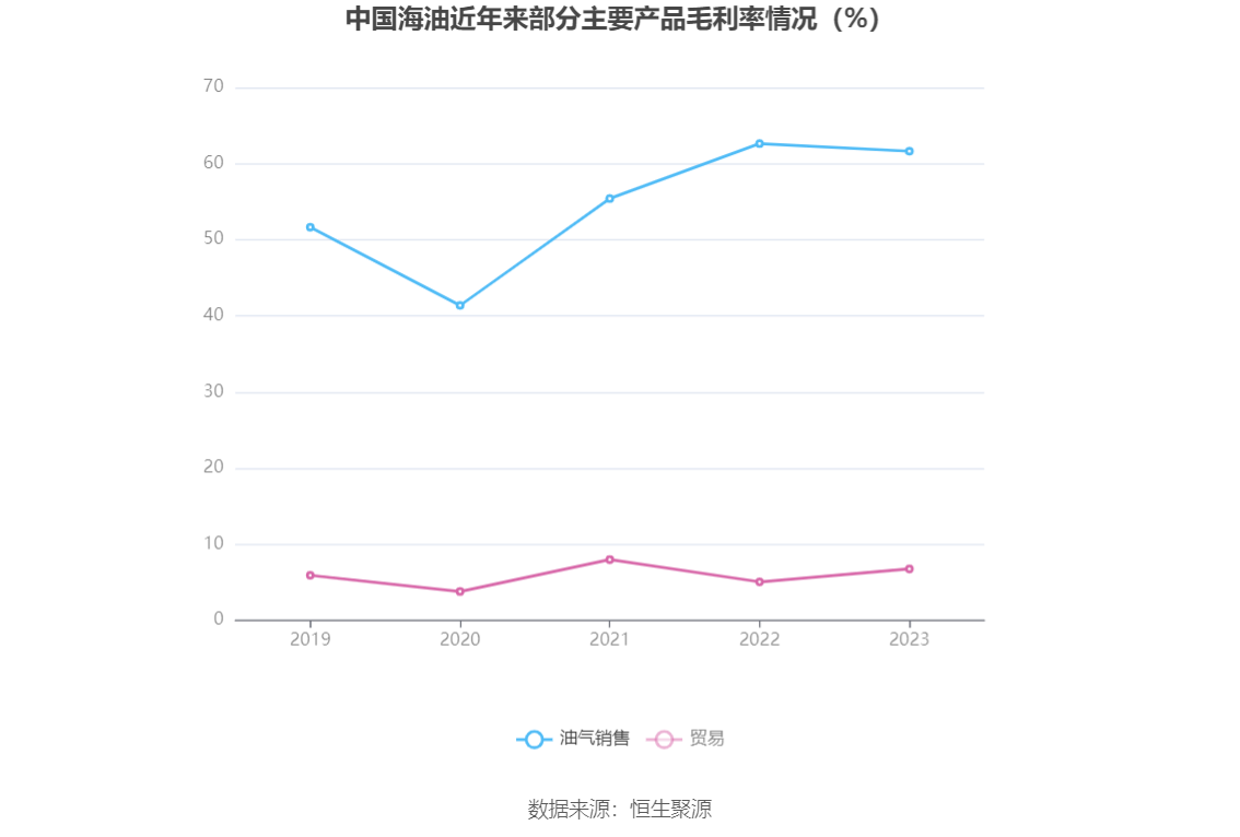 分产品看,油气销售、贸易2023年毛利率分别为61.63%、6.76%。