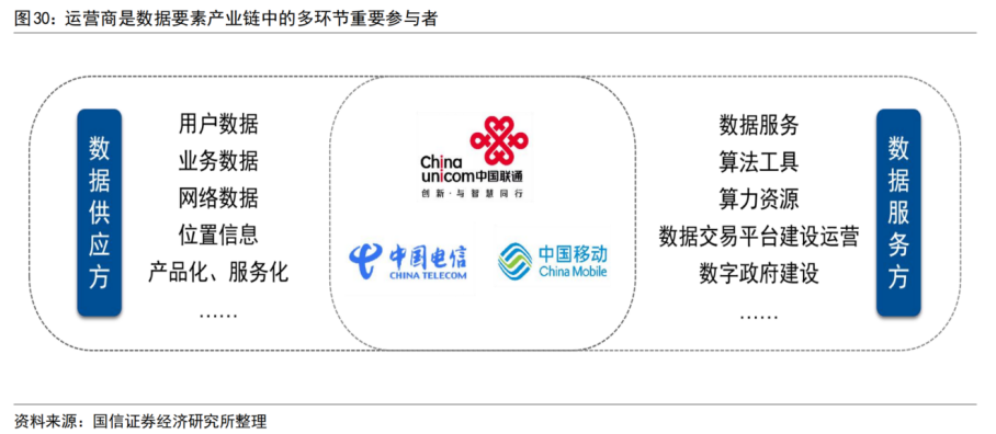 此外,在数据要素市场生态中运营商是众多环节的参与方,将充分受益于行业的快速发展,同时被看作是初次分配阶段的受益者。