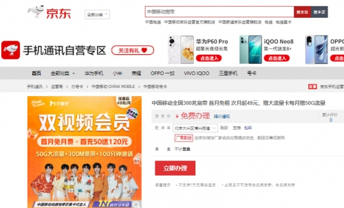 办理宽带可来京东入手一张中国移动动感地带芒果卡,首充50元后月租低至49元,首月免月租,包含100分钟国内通话、20GB通用流量、30GB专属流量、300M高速宽带,激活起下发12个月咪咕视频+芒果PLUS双视频会员。春节期间工作人员依旧可以实现上门安装宽带等服务,不用担心还要等到年后,更便捷。