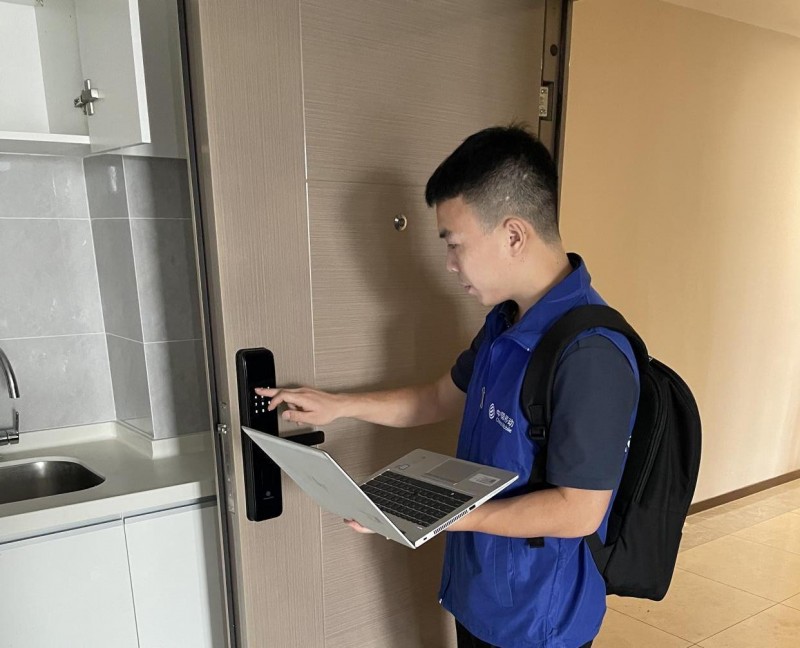 中移物联交付经理在项目现场进行平台及物联锁测试