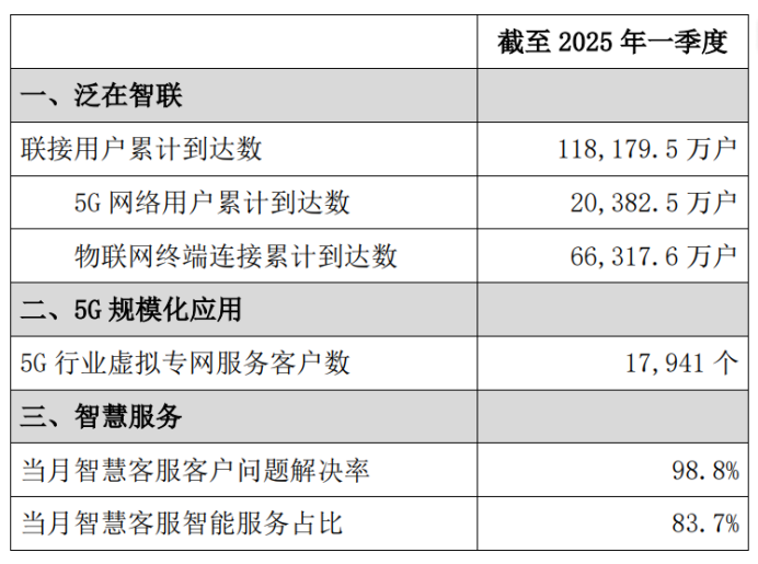 中国联通联接用户累计到达数118,179.5万户,当季净增客户数4,476.1万户;其中5G网络用户累计到达数为20,382.5万户。
