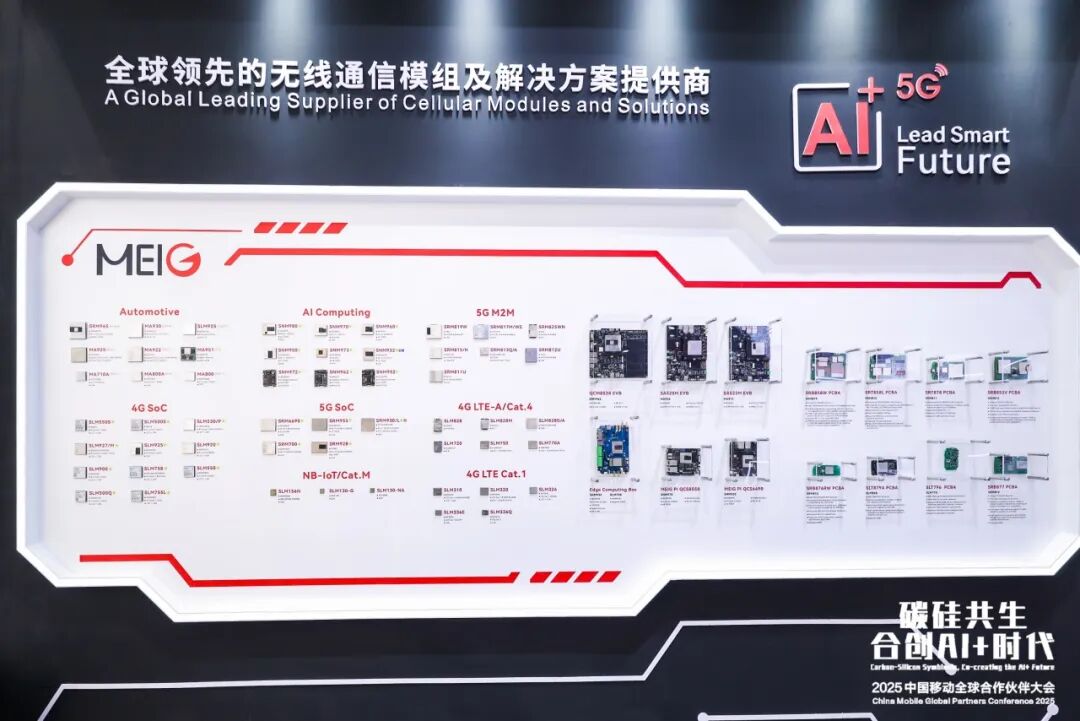 本届大会围绕5G-A与AI、AI+算力网络、智能体、具身智能、低空经济等领域的尖端成果进行集中展出和讨论,进一步加速产业的融合创新。美格智能与中国移动等运营商伙伴竭诚合作多年,共同见证全球数字信息产业从“互联网+”到“5G+”再到“AI+”的高速发展,并共同成为全球通信与计算生态产业发展的推动者和重要组成部分,本次携全系列端侧AI、5G-A、智能物联网领域产品和解决方案集中亮相。