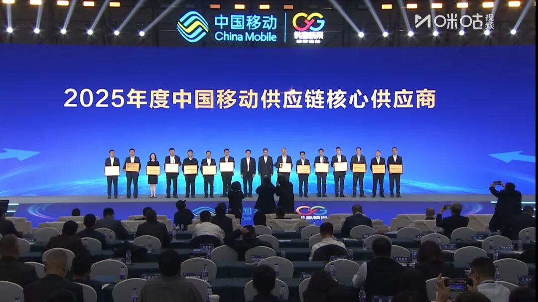 2025年12月11日,在 中国移动 供应链生态合作大会上,江苏 亨通光电 股份有限公司(简称“ 亨通光电 ”,股票代码600487)斩获行业内唯一光缆类产品 A 级供应商荣誉,这也是 亨通光电 连续第三年蝉联该奖项。同时, 亨通光电 被授予“2025年度 中国移动 供应链核心供应商”称号,彰显了企业在光通信领域的综合实力与行业影响力。亨通通信产业集团总裁、 亨通光电 总经理张建峰参会并领奖。