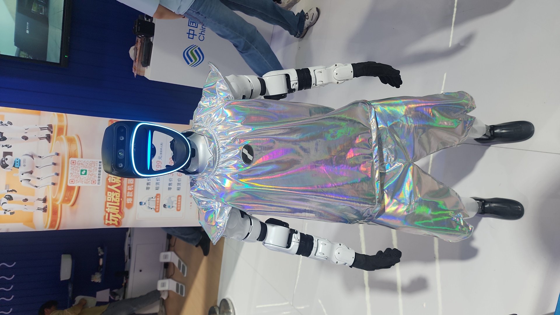 据展会现场工作人员介绍,中国移动机器人类产品的特点是强调智能和交互,如机器狗产品可实现智能随行,逛街遛弯全程“贴身”;人形机器人可无遥控完成导览等。