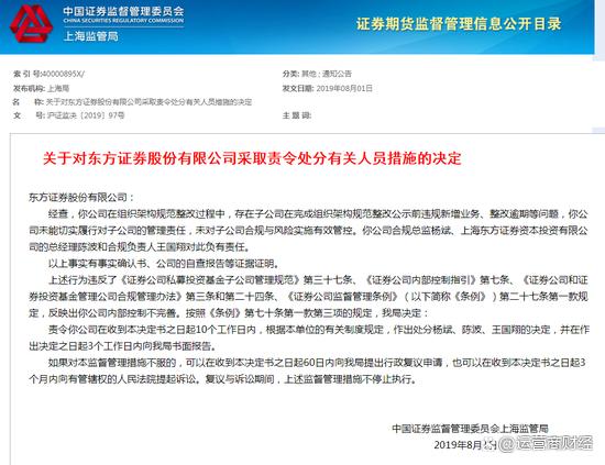 然而在2019年,杨斌曾被上海证监局采取过责令处分,因为子公司上海东方证券资本投资有限公司在完成组织架构规范整改公示前违规新增业务、整改逾期。根据上海证监局发布的责令处分决定中所说,东方证券未能切实履行对子公司的管理责任,未对子公司合规与风险实施有效管控,其中合规总监杨斌对此负有责任并予以处分。