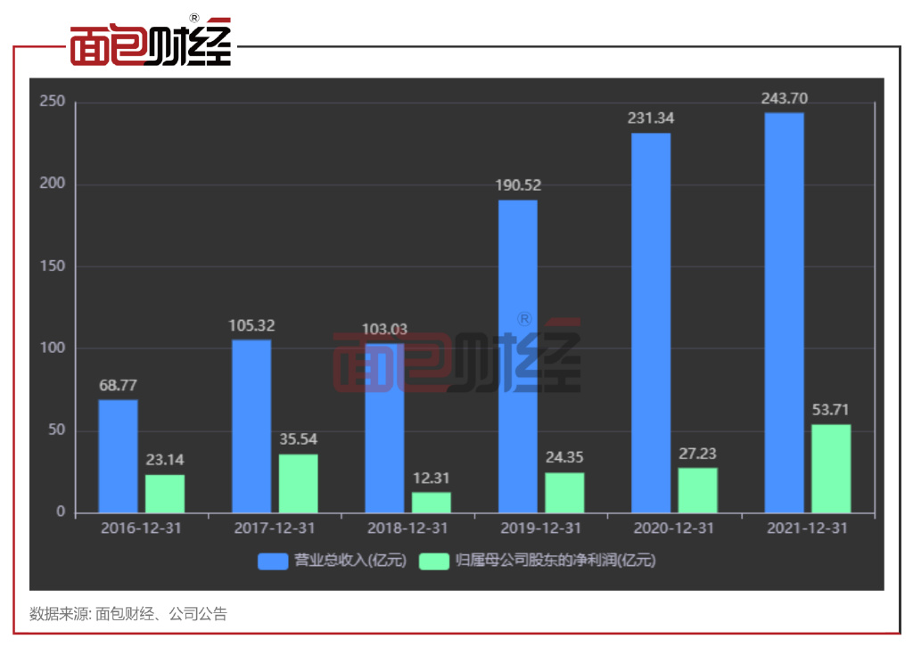 历史财报显示,2021年受益于整体市场回暖,东方证券的营收净利润取得双增长,且创下2016年以来新高,其中,公司实现归母净利润53.71亿元,较上年同比增长达97.26%。
