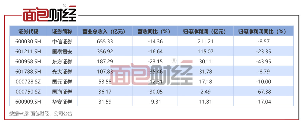 截至3月1日,共有7家券商发布了业绩快报,总营收及归母净利润均有不同程度的下降。其中,东方证券的营收及净利润均处在中游水平,但与其他6家券商相比,东方证券的降幅相对较大。