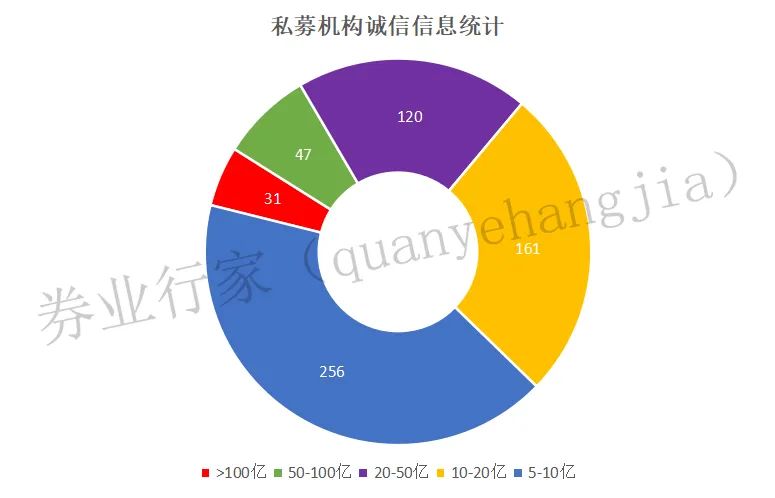 整理中基协私募列表,行家对诚信信息进行了统计:31家百亿私募存在诚信信息;47家规模为50亿-100亿区间;120家规模在20亿-50亿区间;161家规模在10亿元到20亿之间,256家规模在5亿元到10亿元之间。