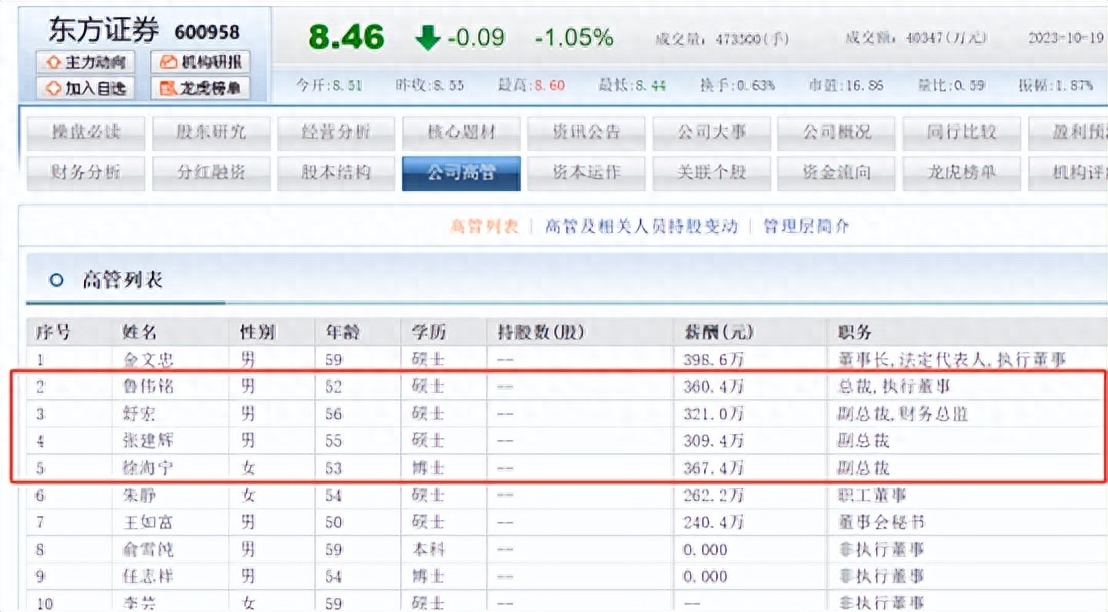 资料显示,鲁伟铭去年薪酬高达360.4万元,相当不错,但他的薪酬还不如副总裁徐海宁,徐海宁是女高管,去年薪酬367.4万元。