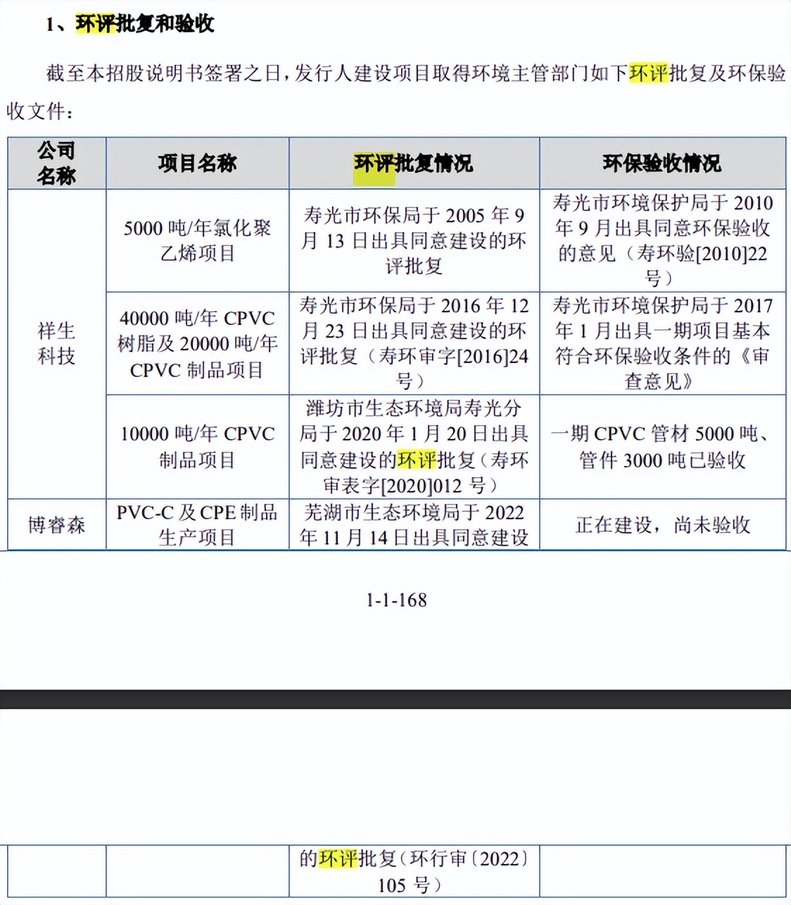 关于CPVC树脂项目,仅“寿环审字[2016]24号之40,000吨/年CPVC树脂及20,000吨年CPVC制品项目”就这一个!至于寿环审表字[2020]012号的“10000吨/年CPVC制品项目”并非CPVC树脂项目。详见以下招股书截图: