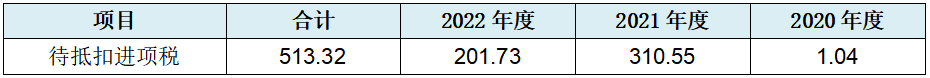 发行人披露的其他流动资产中,待抵扣进项税如下表所示: