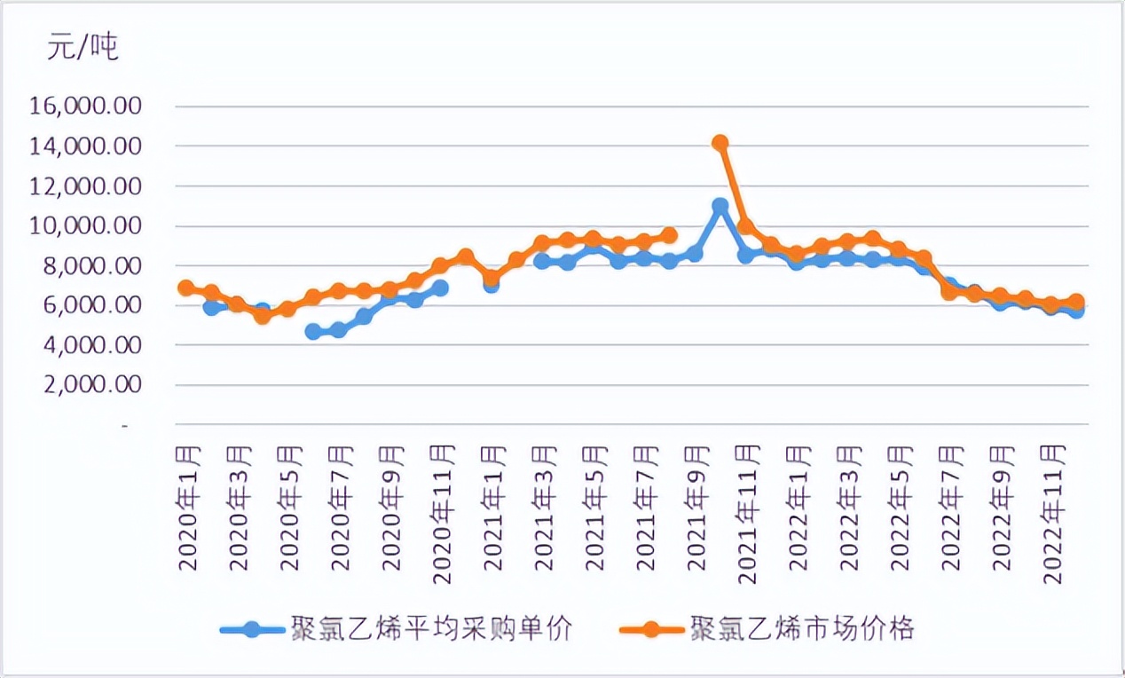 从上图我们可以看到除了两处蓝色的点显示,发行人采购价格高于棕色的市场平均价格外,其余均低于市场平均价格,而发行人采购的是专用PVC树脂其技术指标高于市场上的一般料,且可选择的供应商有限,然而发行人的平均采购价格反而还低于市场平均价格显得相当异常。
