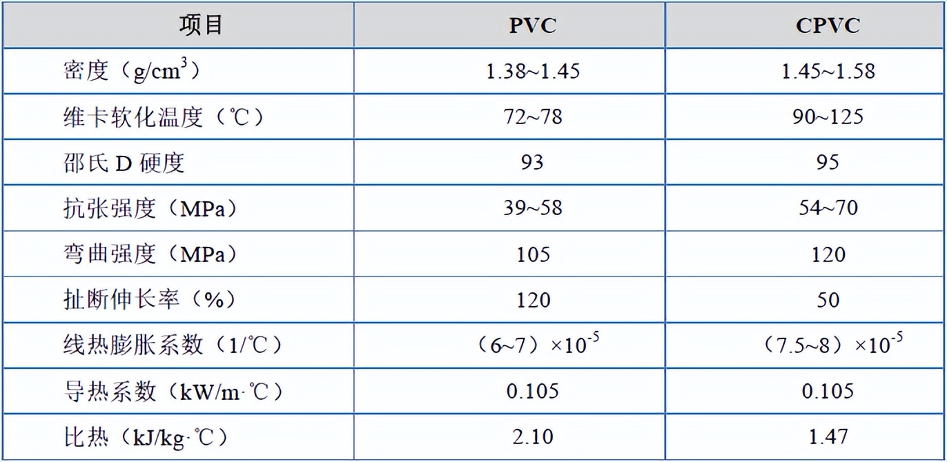 也即CPVC是在PVC通过加氯方式改性基础上得到,发行人披露的二者物理指标差异如下表所示: