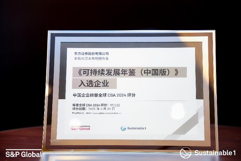 5月13日,国际评级机构标普全球(SP Global)正式发布《可持续发展年鉴(中国版)2025》,凭借在可持续发展领域的领先实践,东方证券连续两年成功入选,也是2025年度唯一入选的证券公司,标志着公司在环境、社会和治理(ESG)领域的管理成效获得评级机构的持续认可。