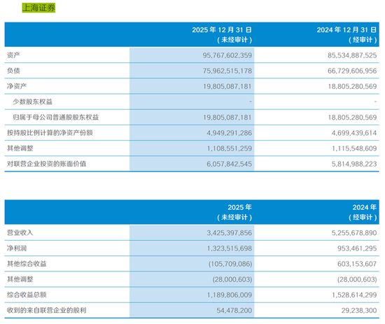 而从国泰海通证券2025年报中可以获悉,截至2025年年末,上海证券总资产957.68亿元,净资产198.05亿元。2025年,上海证券实现营业收入34.25亿元,净利润近13.24亿元。另据上海证券2024年财务报告显示,该公司截至2024年末有81家全国分支机构。