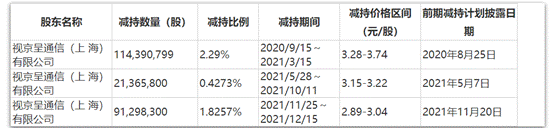 视京呈通信已多次减持江苏有线股份。公告显示,近12个月视京呈通信共计减持3次,合计减持2.27亿股,占公司总股份比例为4.54%。
