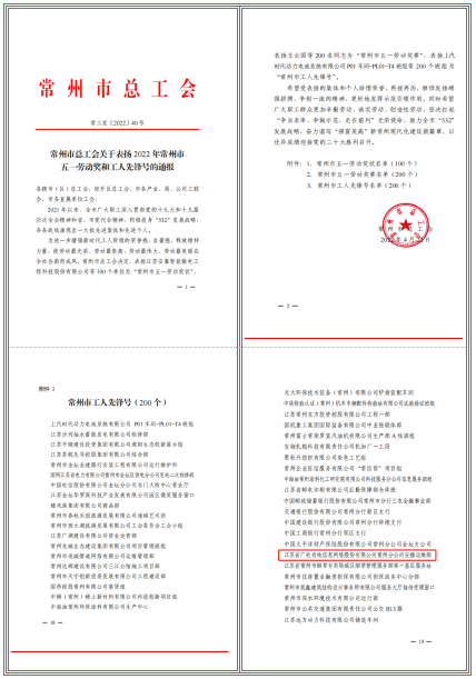 五一前夕,常州市总工会发布《关于表扬2022年常州市五一劳动奖和工人先锋号的通报》(常工发〔2022〕40号),江苏有线常州分公司安播运维部荣获“常州市工人先锋号”。