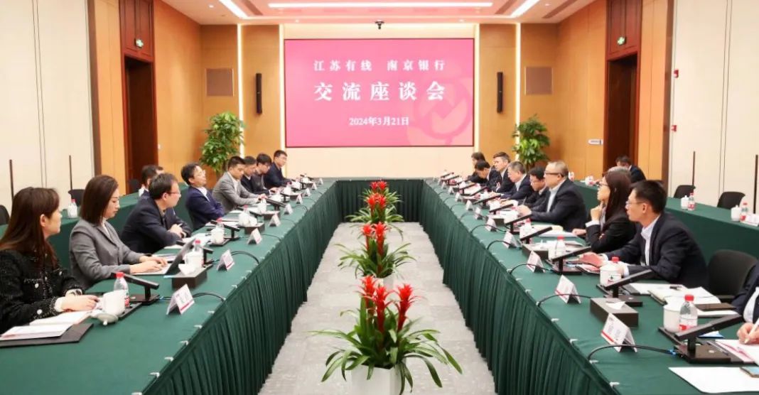 3月21日下午,江苏有线党委书记、董事长庄传伟,党委委员、副总经理吴宇鹏一行赴南京银行股份有限公司开展工作交流。南京银行党委书记、董事长谢宁,副行长、南京分行行长宋清松等参加交流座谈。
