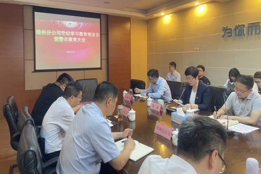 5月21日上午,徐州分公司召开党纪学习教育推进会暨警示教育大会。邀请徐州市纪委监委宣传部副部长仝雪姣进行党纪教育培训,从《中国共产党纪律处分条例》修订的历史沿革、重要意义以及六大纪律修订主要内容和重点新增条款作了精彩讲解。党员干部集中观看了《不松劲不停步再出发》警示教育片,以案说纪、以案说法。