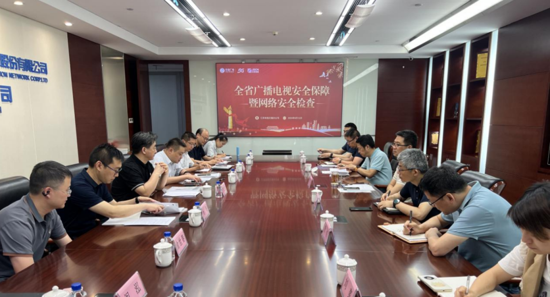 近日,省广播电视局在江苏有线开展2024年度广播电视安全保障暨网络安全工作责任制落实情况检查。省公司安播中心相关业务负责人陪同检查。