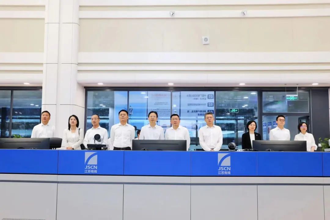 签约仪式前,叶向峰一行参观了江苏有线三网融合枢纽中心播控大厅和数智广电融创展示厅。
