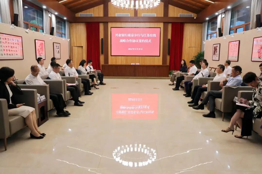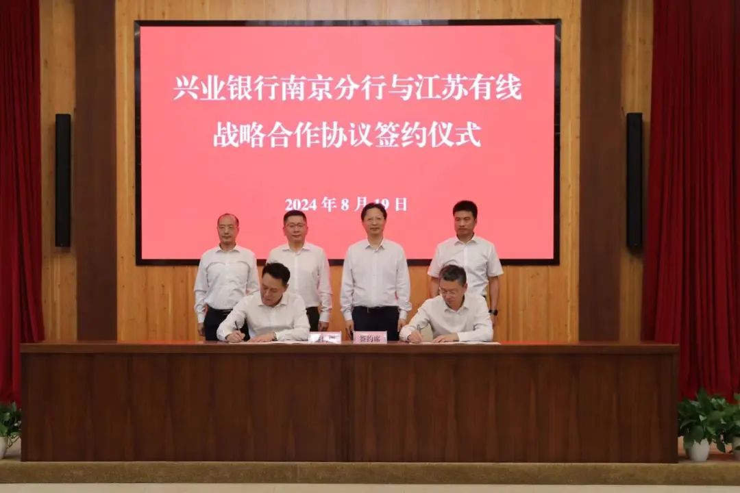 8月19日,兴业银行南京分行与江苏有线战略合作签约仪式在江苏有线三网融合枢纽中心举行。兴业银行南京分行党委书记、行长叶向峰,江苏有线党委书记、董事长庄传伟出席签约仪式并致辞。